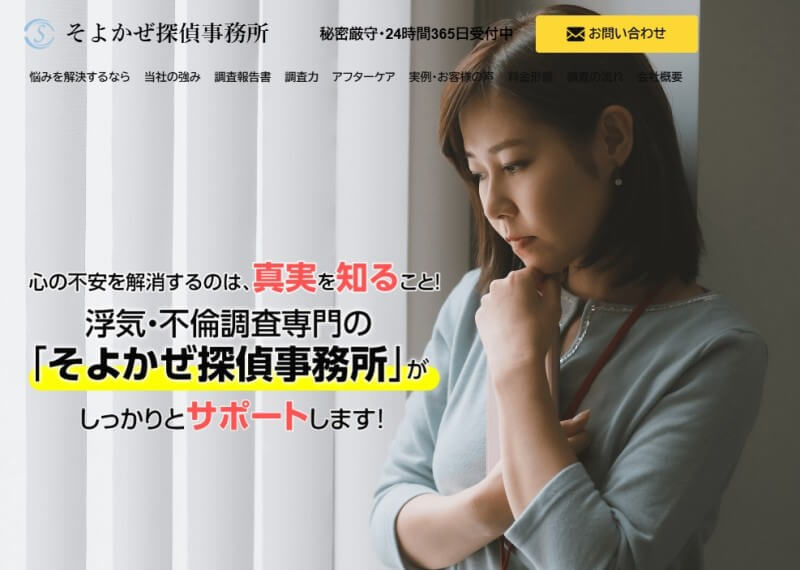 成功率・満足度ともに90%以上と高いサービスの『そよかぜ探偵事務所』。