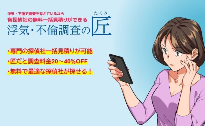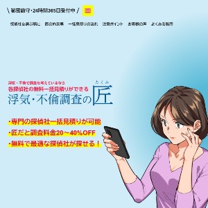 『浮気・不倫調査の匠』は調査の実績、料金、調査員の質など“厳選した探偵社だけ”を紹介してくれます。